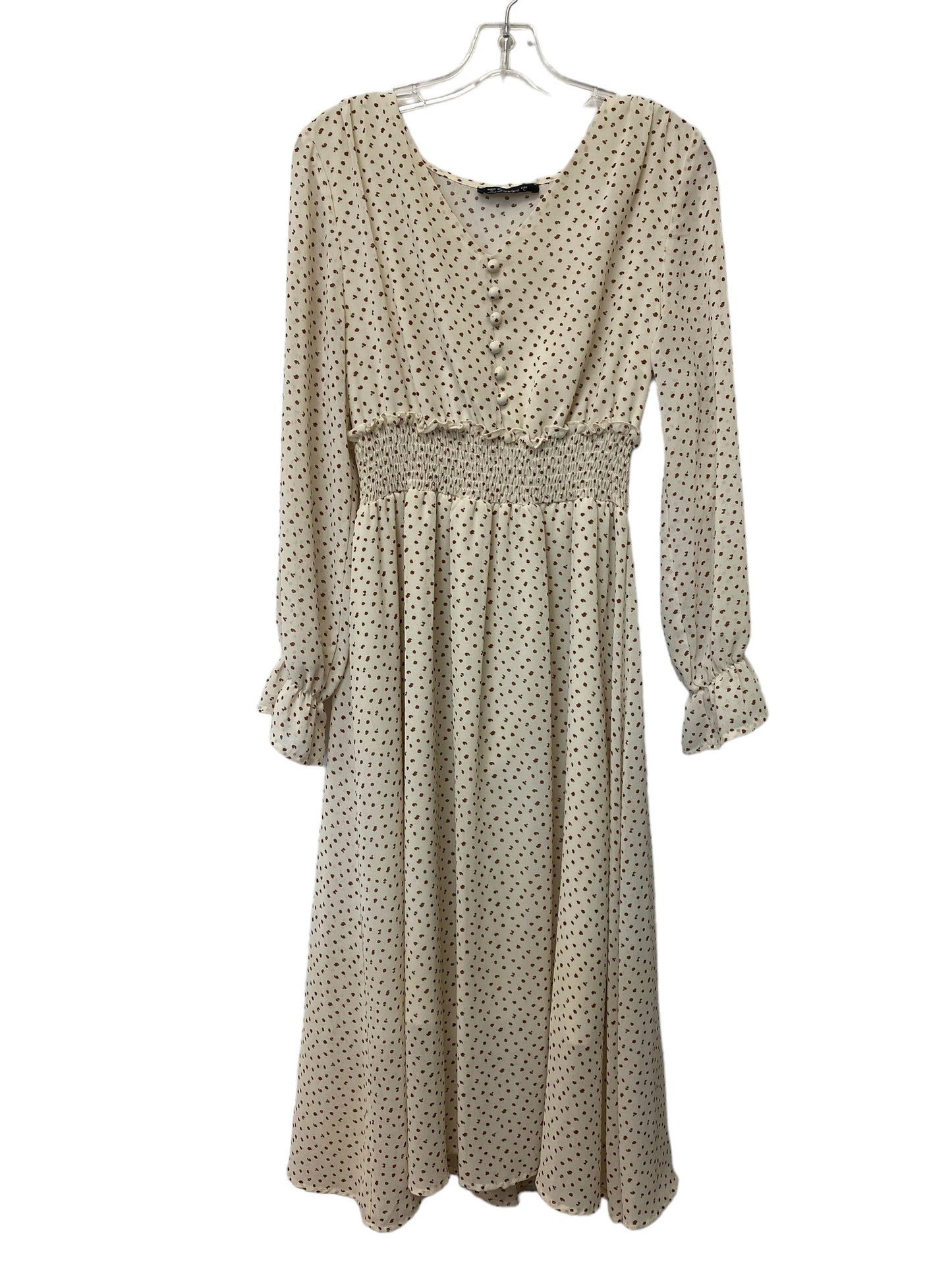 Cream Dress Casual Midi Clothes Mentor, Size L
