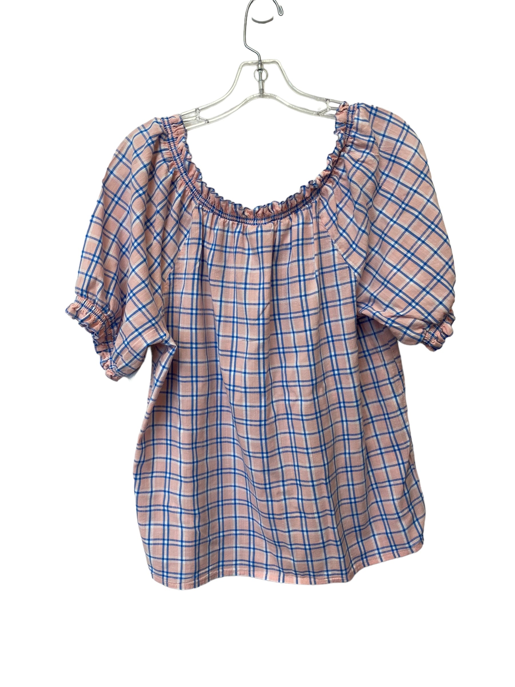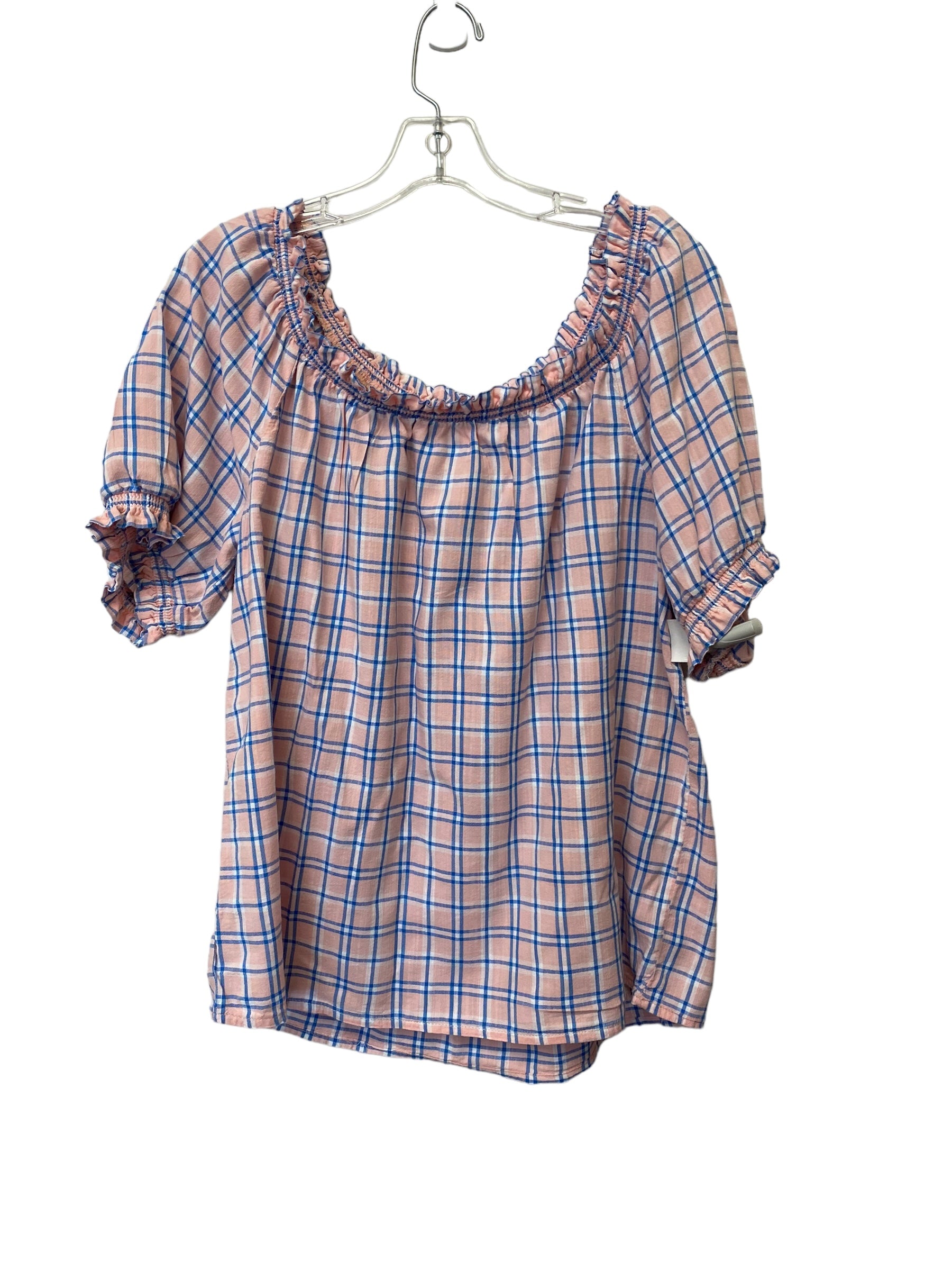 Plaid Pattern Top Short Sleeve St Johns Bay, Size M