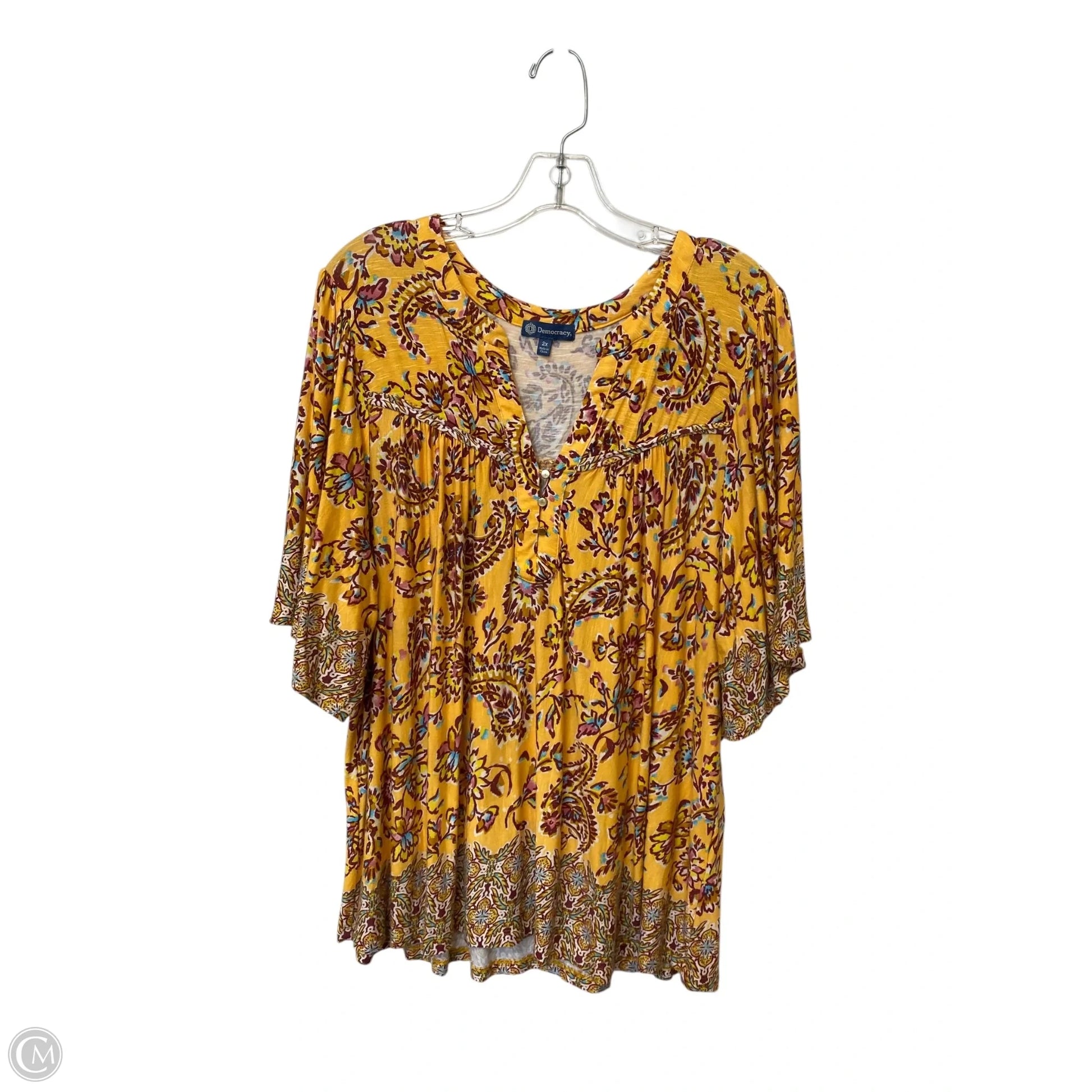 Top Short Sleeve By Democracy In Yellow, Size: 2x
